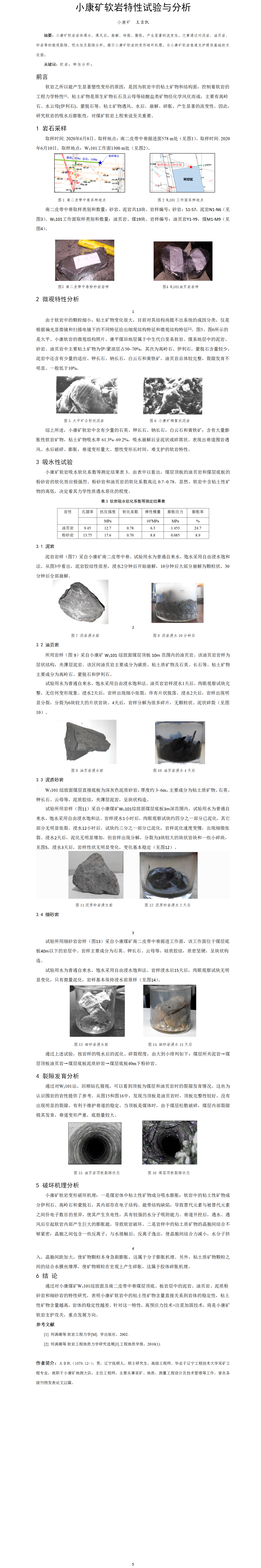 第47屆等級獎?wù)撐?--小康礦軟巖特性試驗(yàn)與分析