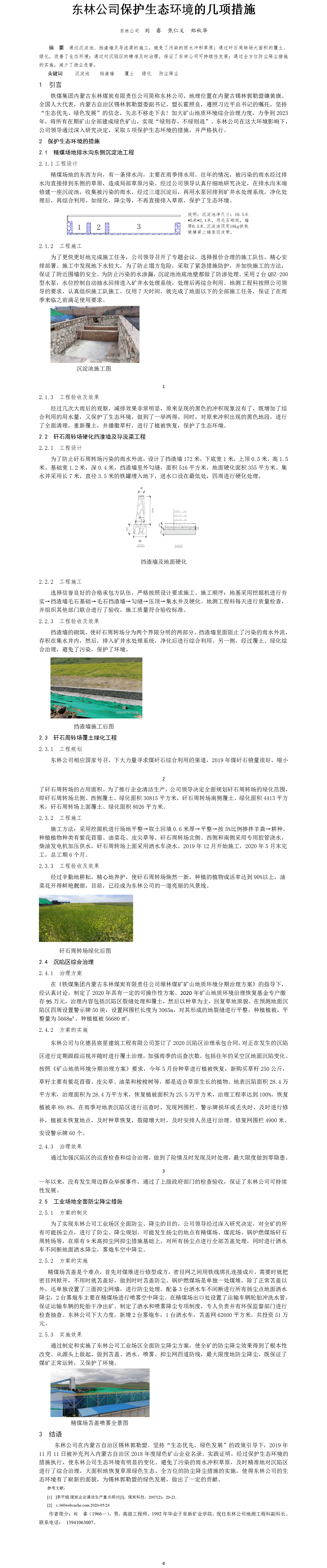第47屆等級(jí)獎(jiǎng)?wù)撐?--東林公司保護(hù)生態(tài)環(huán)境的幾項(xiàng)措施