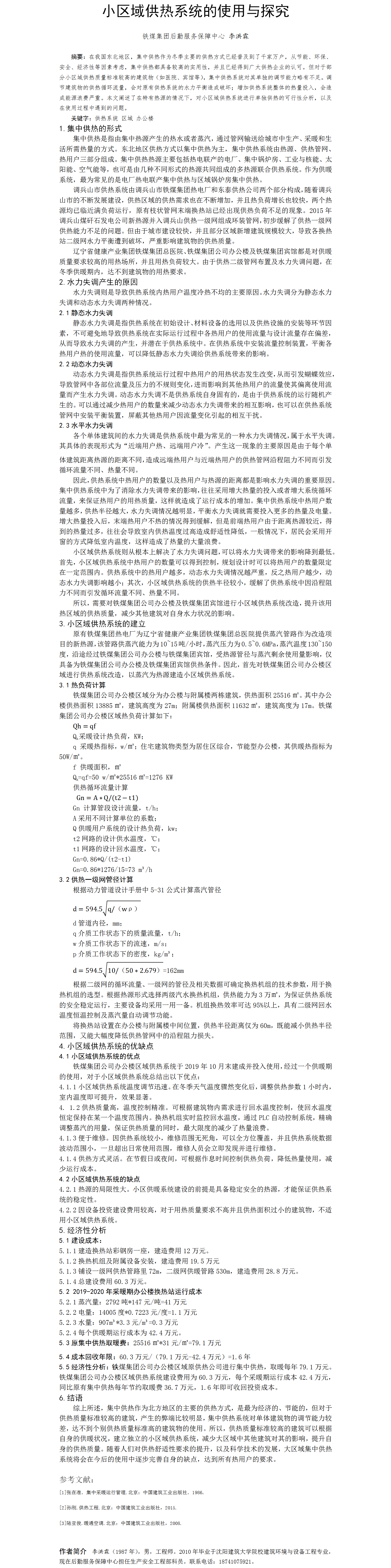 第47屆等級獎?wù)撐?--小區(qū)域供熱系統(tǒng)的使用與探究