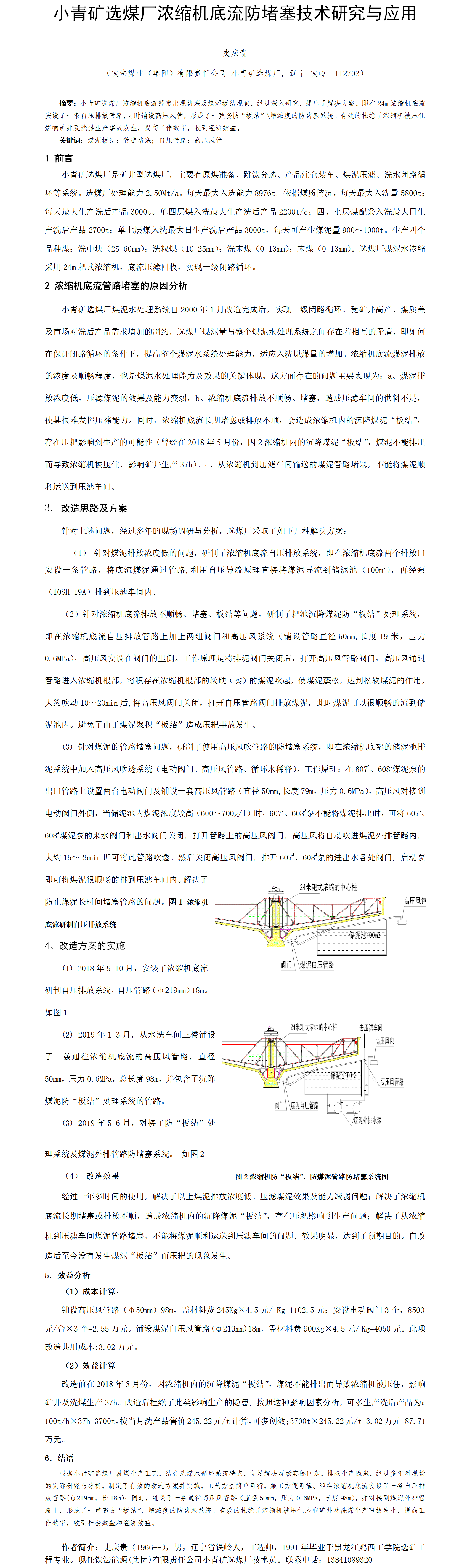 第47屆等級獎?wù)撐?--小青礦選煤廠濃縮機(jī)底流防堵塞技術(shù)研究與應(yīng)用