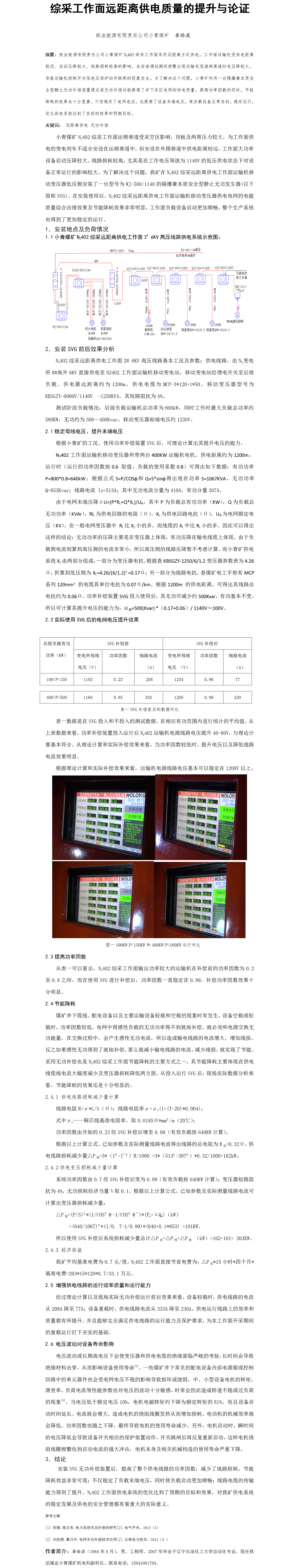 第48屆等級(jí)獎(jiǎng)?wù)撐?--綜采工作面遠(yuǎn)距離供電質(zhì)量的提升與論證