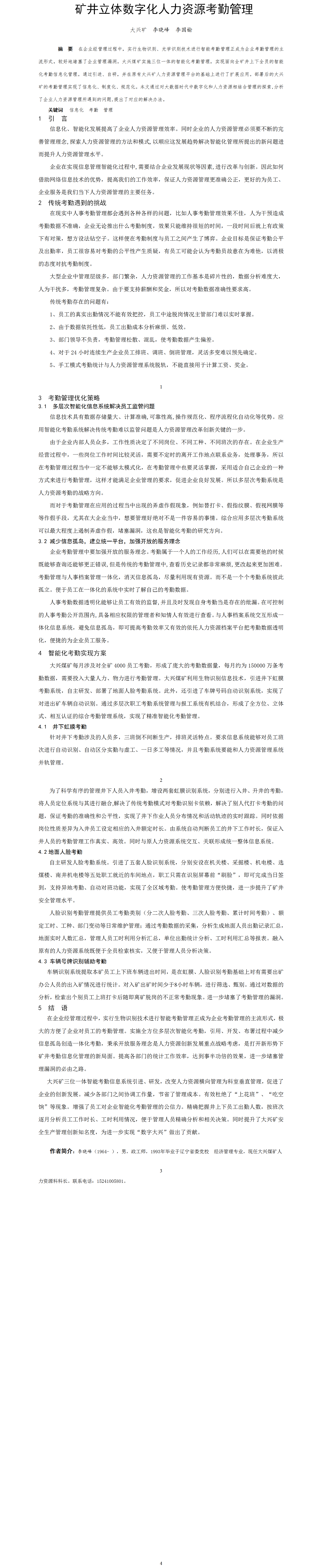 第48屆等級(jí)獎(jiǎng)?wù)撐?--礦井立體數(shù)字化人力資源考勤管理