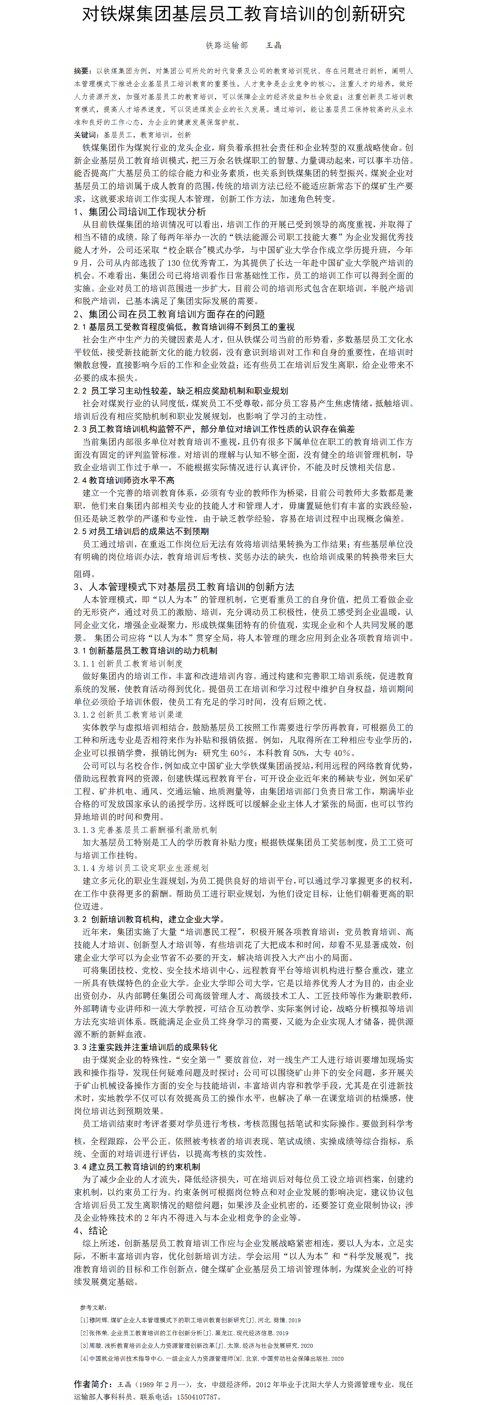 第48屆等級(jí)獎(jiǎng)?wù)撐?--對(duì)鐵煤集團(tuán)基層員工教育培訓(xùn)的創(chuàng)新研究