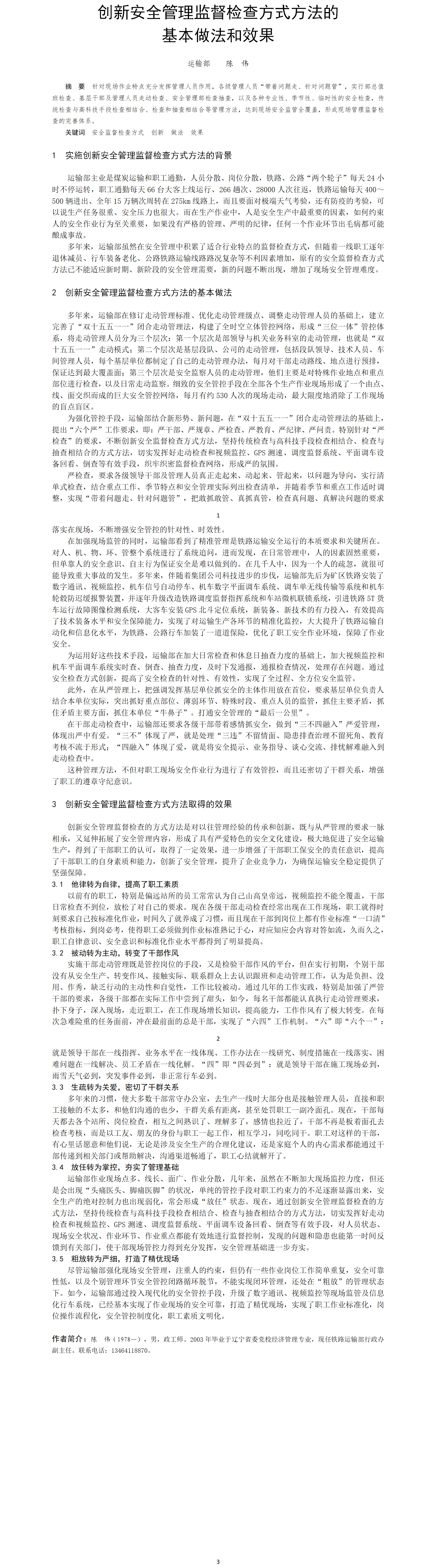 第54屆等級(jí)獎(jiǎng)?wù)撐?--創(chuàng)新安全管理監(jiān)督檢查方式方法的基本做法和效果