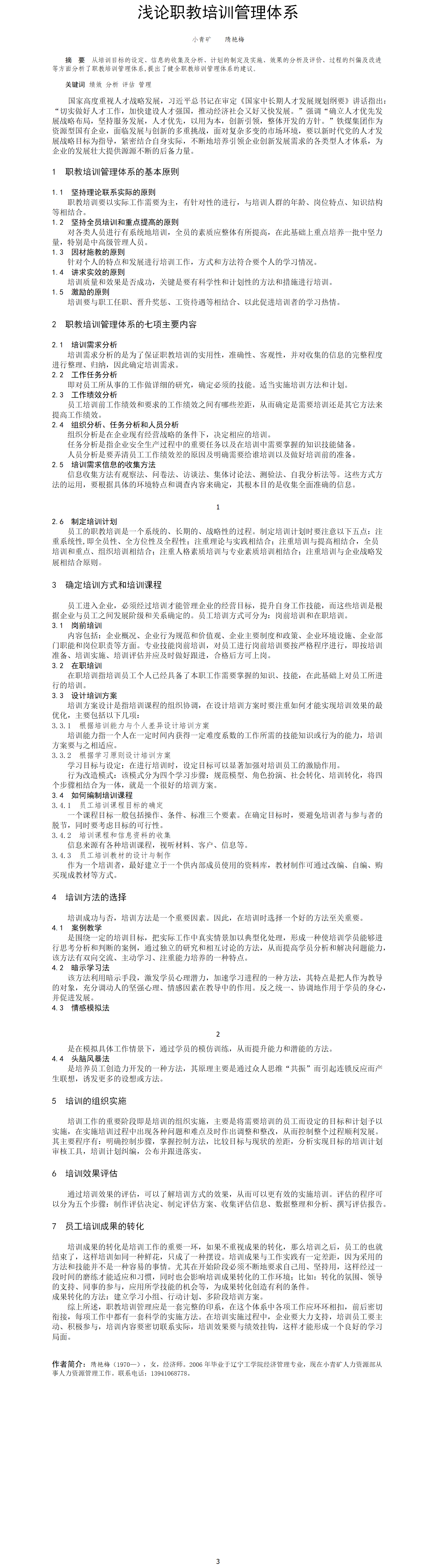 第54屆等級(jí)獎(jiǎng)?wù)撐?--淺論職教培訓(xùn)管理體系
