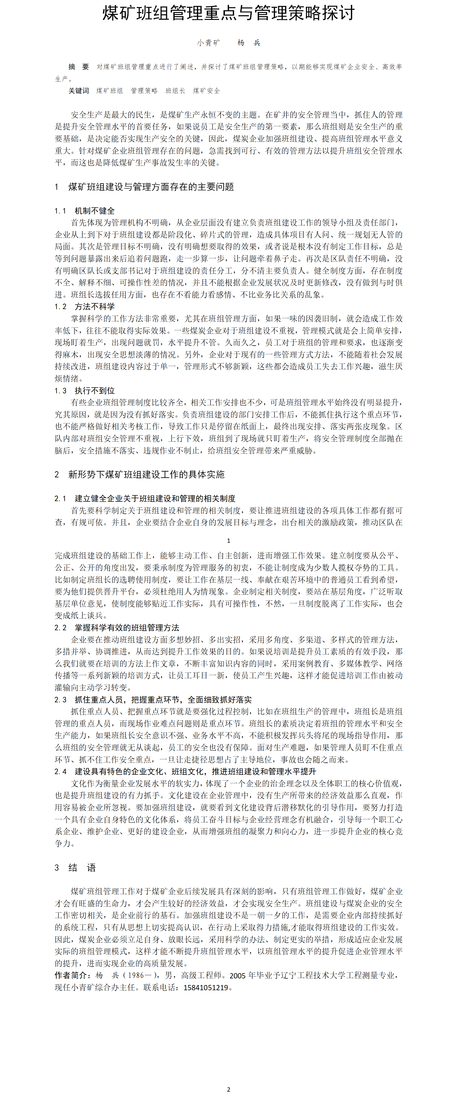 第54屆等級(jí)獎(jiǎng)?wù)撐?--煤礦班組管理重點(diǎn)與管理策略探討