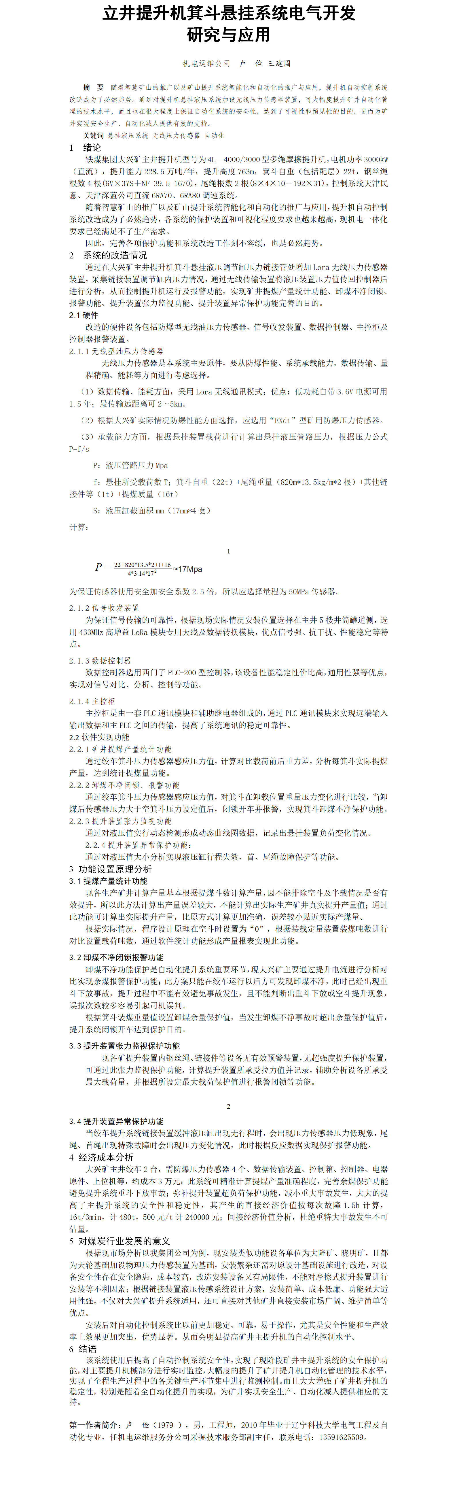 第56屆等級(jí)獎(jiǎng)?wù)撐?--立井提升機(jī)箕斗懸掛系統(tǒng)電氣開發(fā)研究與應(yīng)用