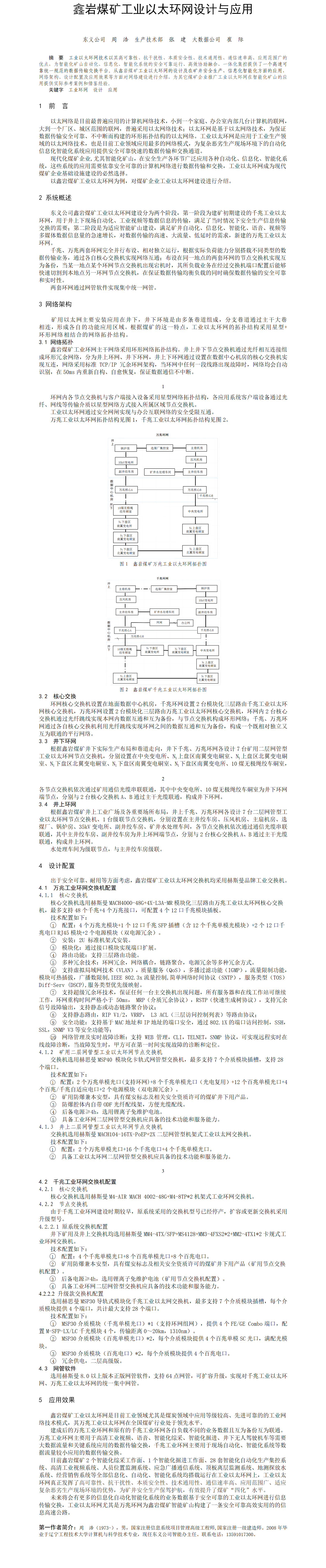 第56屆等級獎論文---鑫巖煤礦工業(yè)以太環(huán)網設計與應用