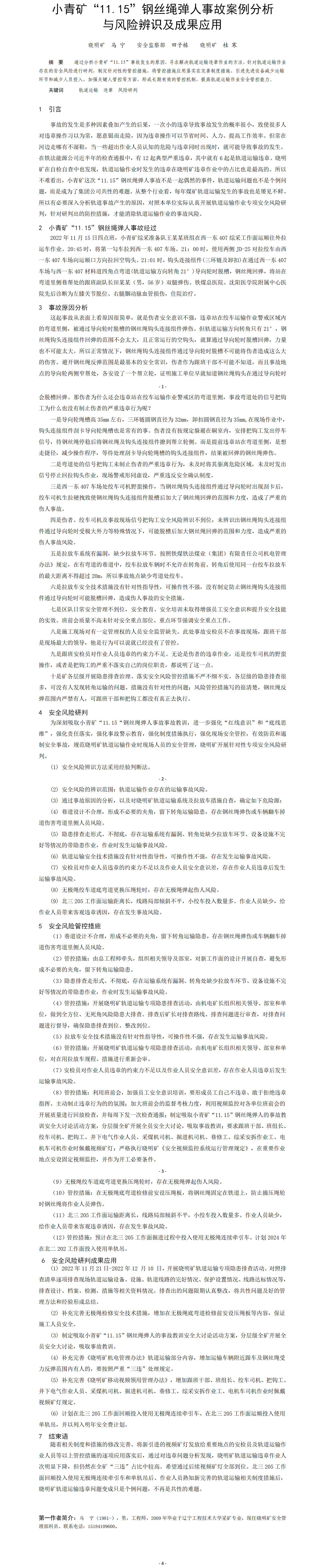 第58屆等級(jí)獎(jiǎng)?wù)撐?--小青礦“11.15“鋼絲繩彈人事故案例分析與風(fēng)險(xiǎn)辨識(shí)成果應(yīng)用