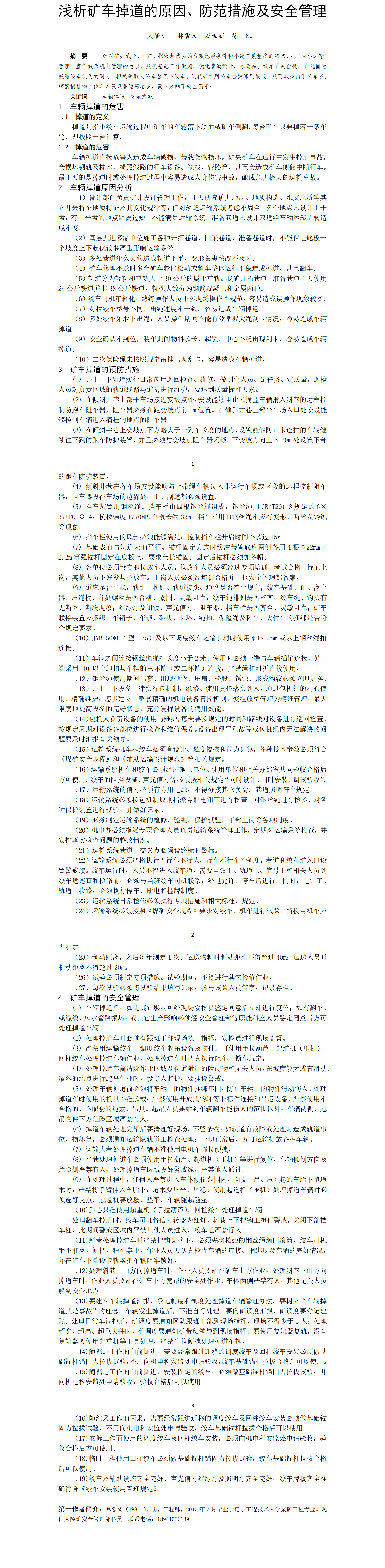 第58屆等級獎?wù)撐?--淺析礦車掉道的原因、防范措施及安全管理
