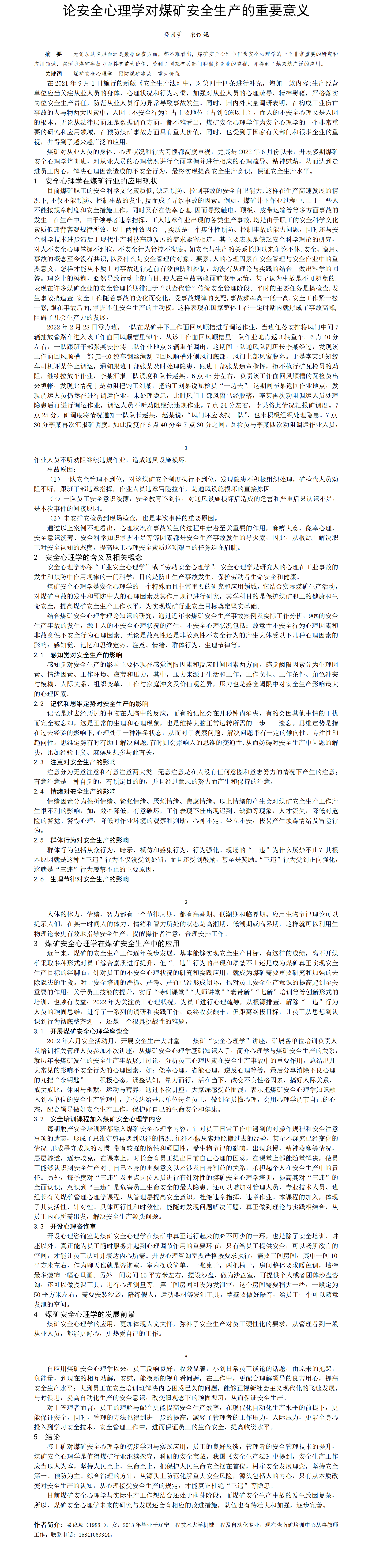 第58屆等級獎(jiǎng)?wù)撐?--論安全心理學(xué)對煤礦安全生產(chǎn)的重要意義