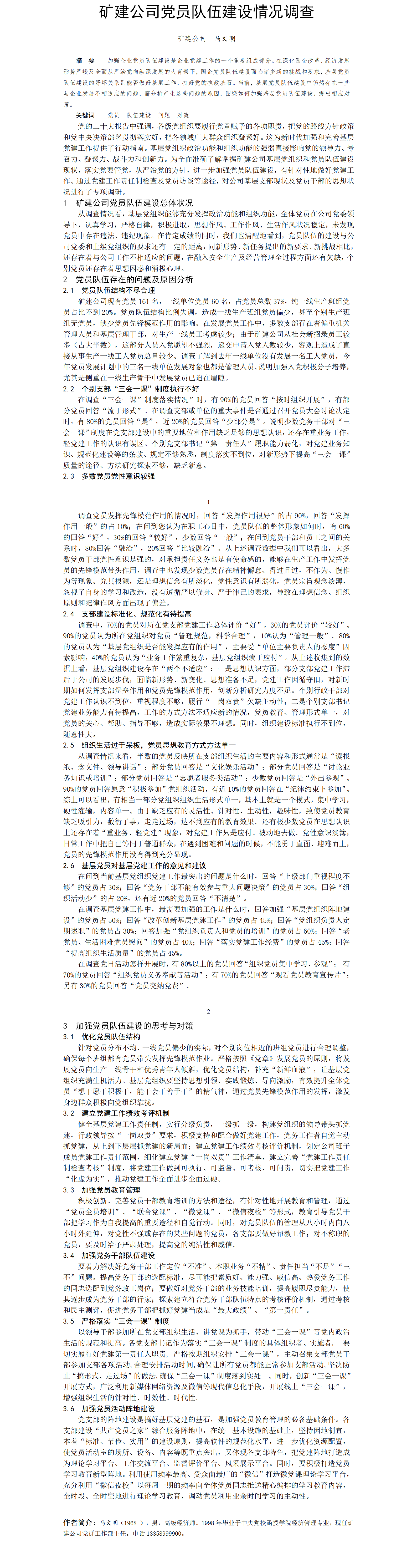 第58屆等級(jí)獎(jiǎng)?wù)撐?--礦建公司黨員隊(duì)伍建設(shè)情況調(diào)查
