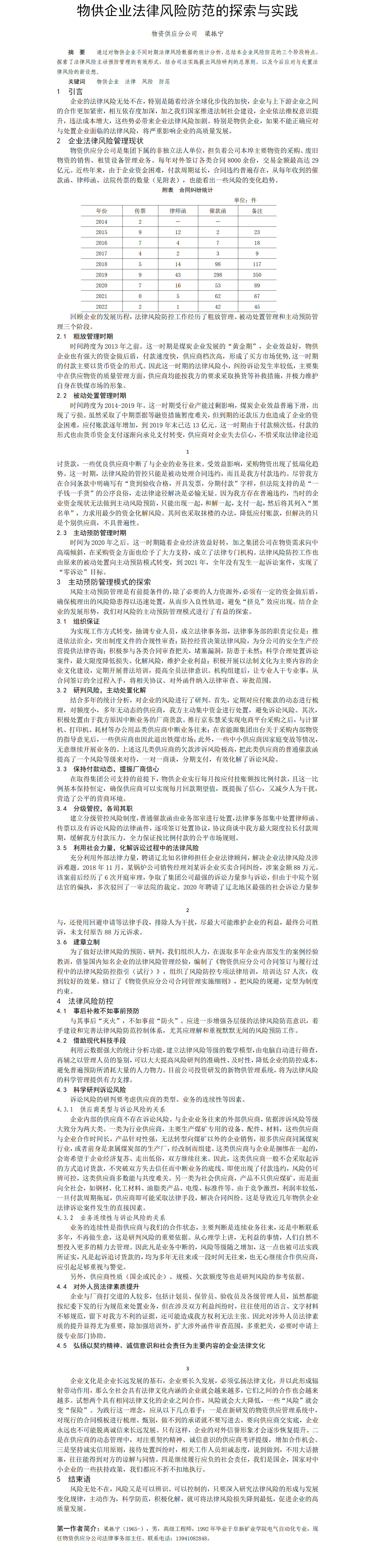 第58屆等級獎論文---物供企業(yè)法律風險防范的探索與實踐