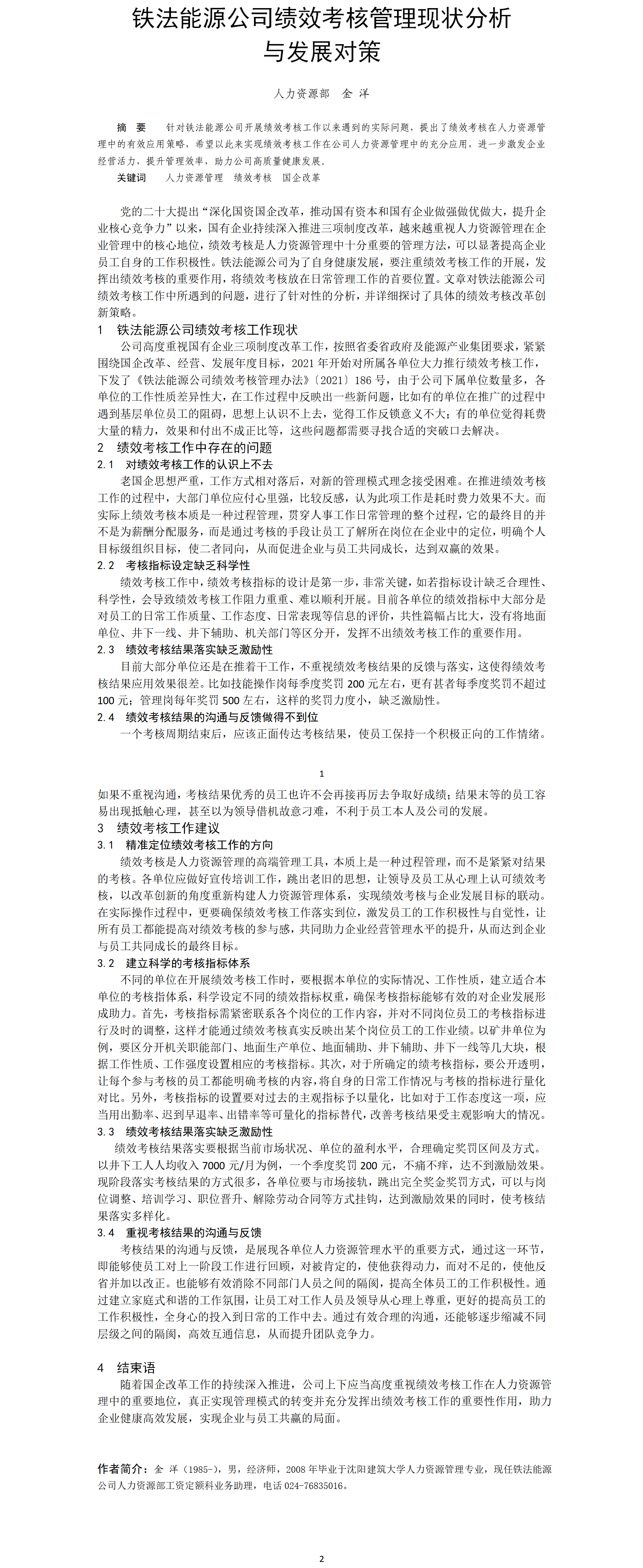 第58屆等級(jí)獎(jiǎng)?wù)撐?-鐵法能源公司績(jī)效考核管理現(xiàn)狀分析與發(fā)展對(duì)策
