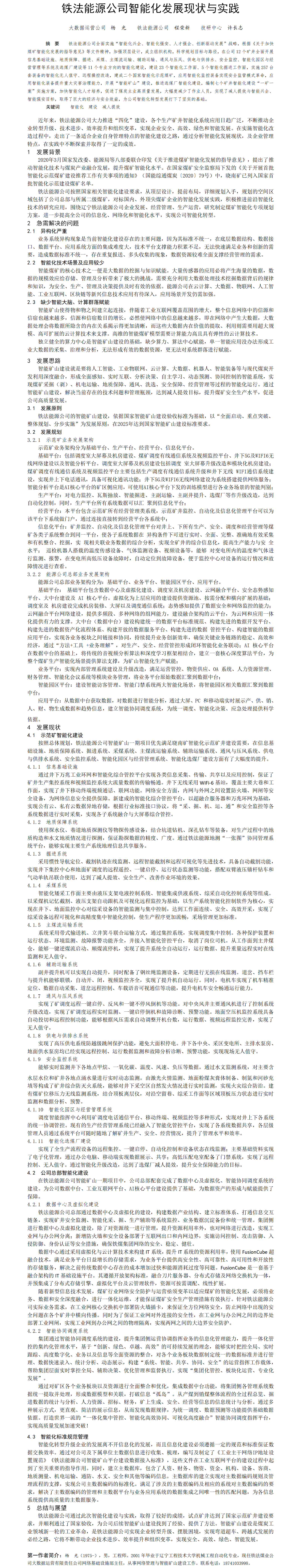 第60屆等級獎論文---鐵法能源公司智能化發(fā)展現(xiàn)狀與實踐