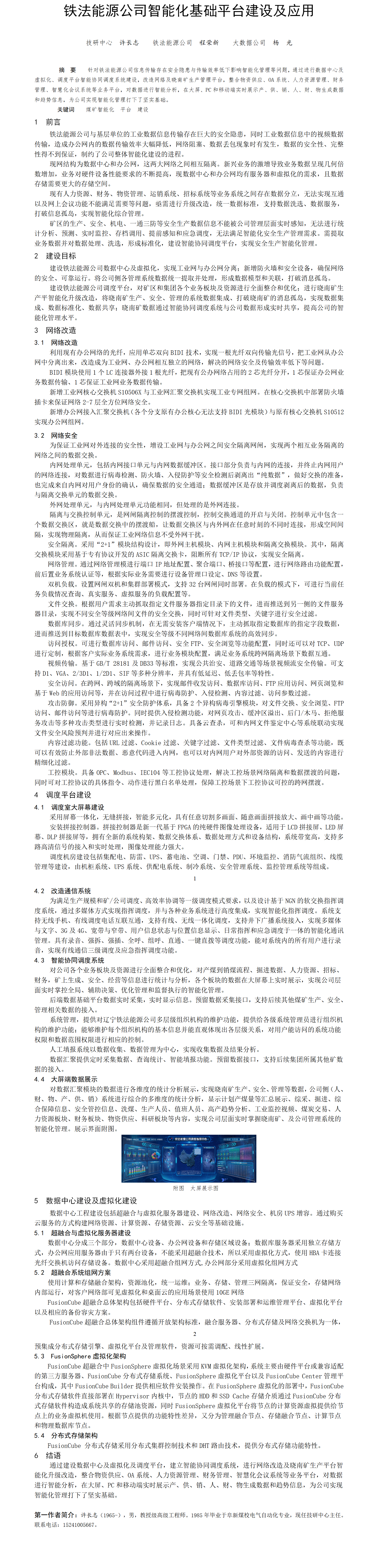第60屆等級獎?wù)撐?--鐵法能源公司智能化基礎(chǔ)平臺建設(shè)及應(yīng)用