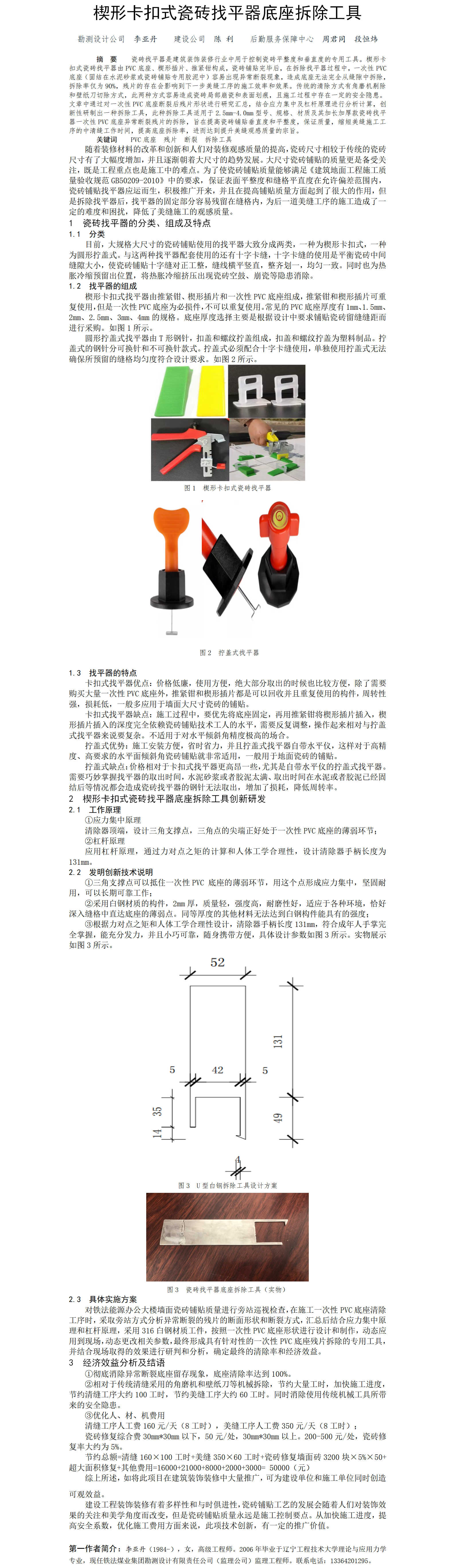 第60屆等級獎?wù)撐?--楔形卡扣式瓷磚找平器底座拆除工具