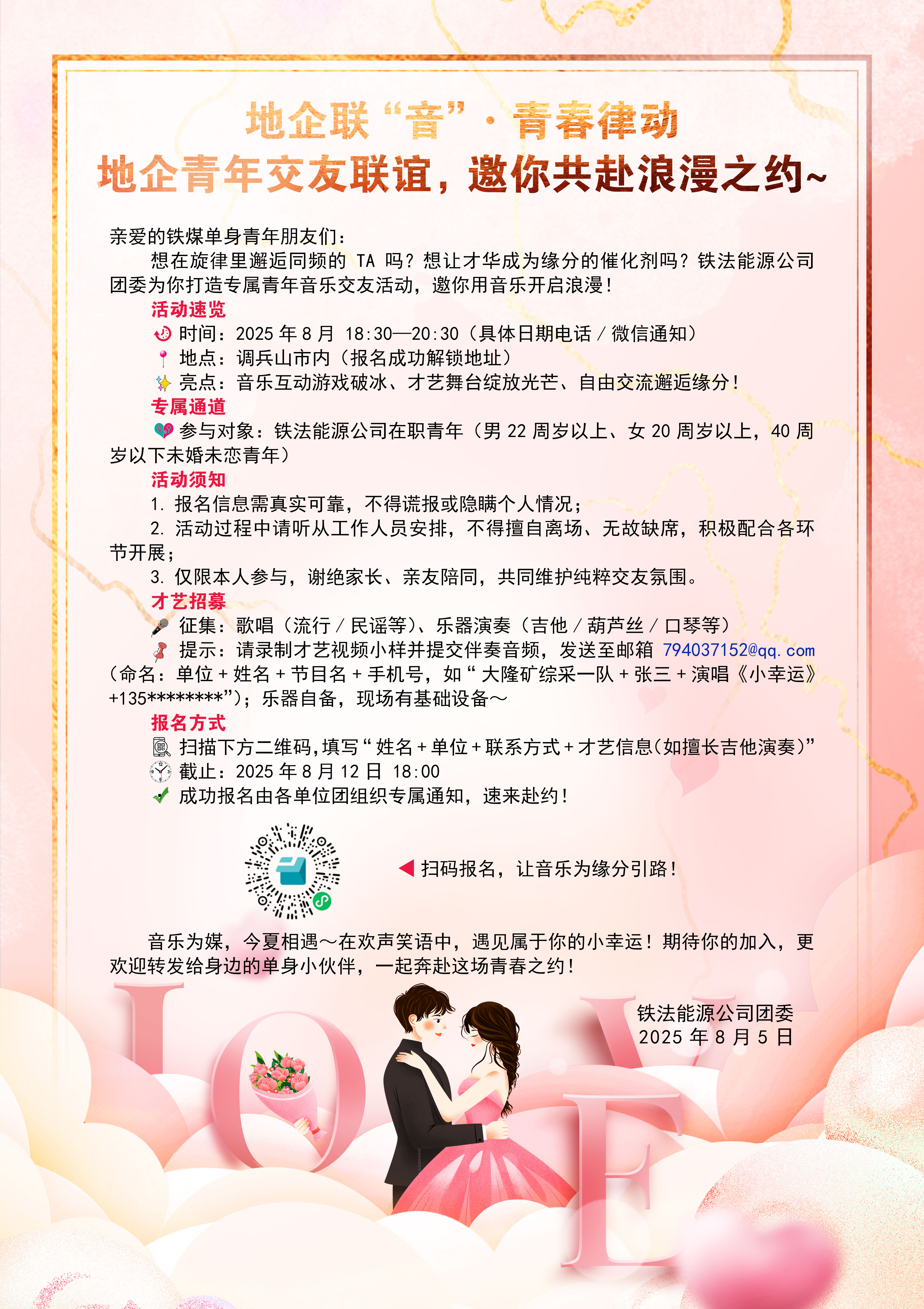 地企聯(lián)“音”·青春律動丨青年交友聯(lián)誼,邀你共赴浪漫之約,快來報名吧!