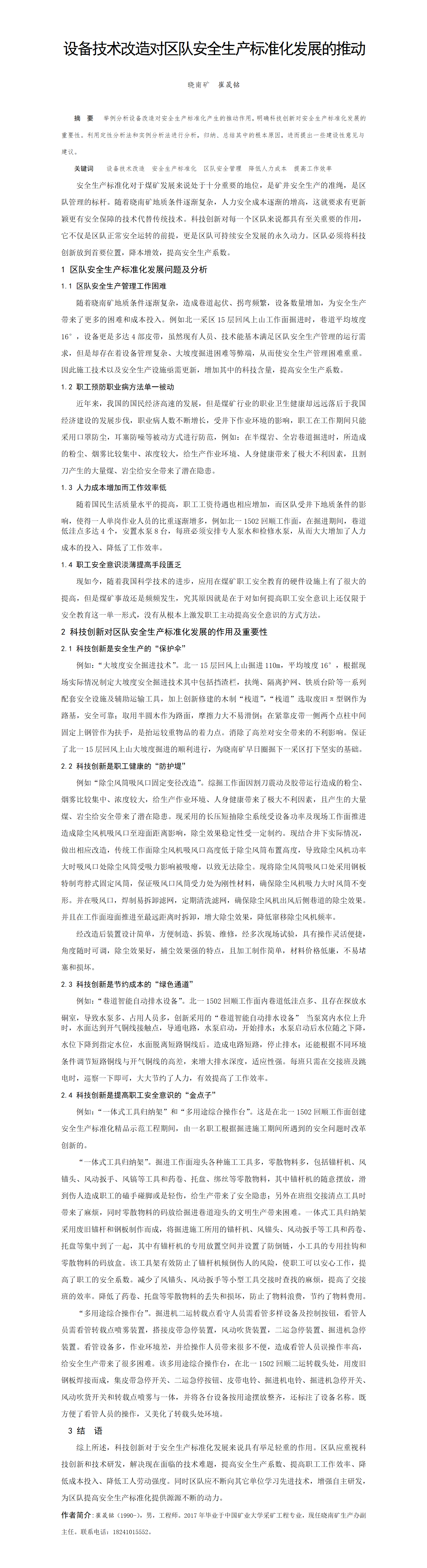 第61屆等級(jí)獎(jiǎng)?wù)撐?--設(shè)備技術(shù)改造對(duì)區(qū)隊(duì)安全生產(chǎn)標(biāo)準(zhǔn)化發(fā)展的推動(dòng)