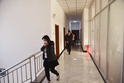 按照本次消防應急疏散演練實施計劃,職工發(fā)現(xiàn)機關(guān)二樓會議室北側(cè)墻壁開關(guān)冒煙,有著火蔓延的可能,隨即及時上報,總場調(diào)度室立即啟動應急預案,迅速切斷二樓電源總開關(guān),展開有序的滅火行動,并按照預先規(guī)劃的疏散路線,組織員工迅速有序地撤離到辦公樓外的安全區(qū)域。
