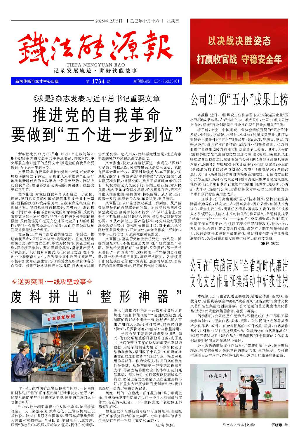 一直以來,公司高度重視“五小”技術(shù)創(chuàng)新,堅持以企業(yè)實(shí)際需求為導(dǎo)向,以安全生產(chǎn)、提高效率、提升質(zhì)量、創(chuàng)新技術(shù)為核心,聚焦主責(zé)主業(yè),明確任務(wù)清單,落實(shí)攻關(guān)責(zé)任,建立“技術(shù)人才引領(lǐng)研發(fā)、技能人才推動轉(zhuǎn)化”的協(xié)同機(jī)制,貫通科技成果“培育——轉(zhuǎn)化——推廣——表彰”的全周期管理,依托“職工創(chuàng)新工作室”等平臺,引領(lǐng)職工積極開展創(chuàng)新攻關(guān)、技術(shù)協(xié)作、發(fā)明創(chuàng)造、合理化建議等項(xiàng)目實(shí)踐,激發(fā)廣大職工創(chuàng)新創(chuàng)造活力,加速關(guān)鍵技術(shù)突破與成果轉(zhuǎn)化,推動科技創(chuàng)新與產(chǎn)業(yè)升級深度融合,為公司高質(zhì)量發(fā)展提供強(qiáng)有力的科技支撐。(田野 施文)