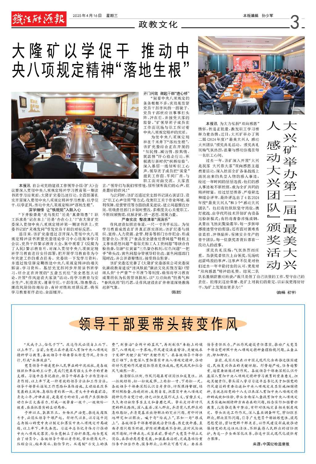 大隆礦以學(xué)促干 推動(dòng)中央八項(xiàng)規(guī)定精神…