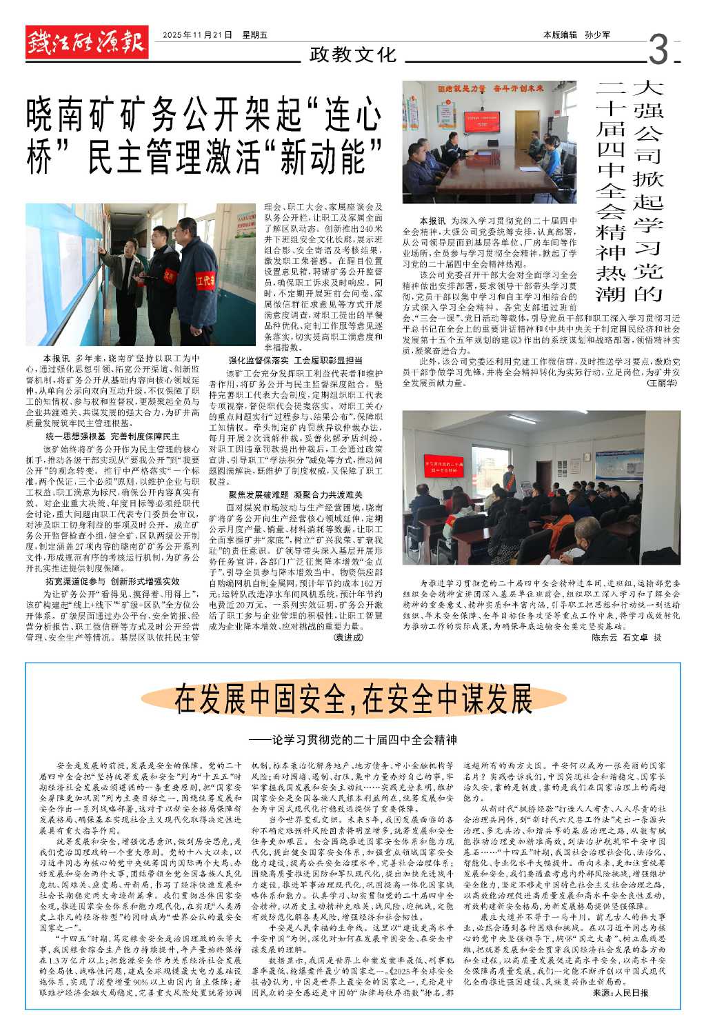 曉南礦礦務(wù)公開架起“連心橋” 民主管…